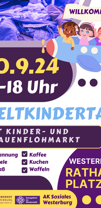 Die Familienseite Weltkindertag K. Kaiser Weltkindertag Wir sind dabei! Besucht unseren Stand in Westerburg am Parkplatz der Verbandsgemeinde/Bücherei! M. Jung Riesen-Mak'n Break Pedalos und mehr....